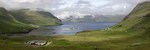 Een viskwekerij in de baai en de gebouwen die erbij horen